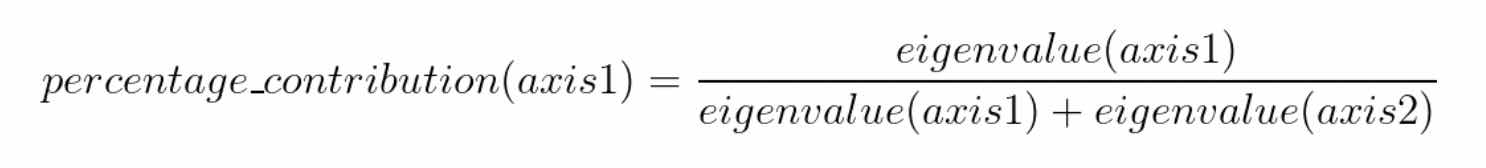 The percentage contribution of each axis towards the total dataset variance can be calculated as: