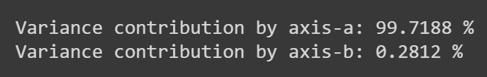 The above numbers prove that the a-axis contributes 99.7% towards the dataset variance and that we can drop the b-axis and lose just 0.28% of the variance.